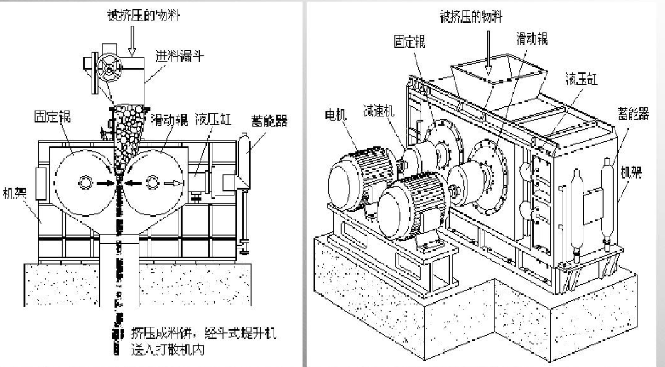 Валковый пресс – это разновидность шлифовального оборудования.в соответствии с принципом измельчения слоя высокого давления и принимает режим работы измельчения одного зерна. Он в основном состоит из рамы, роликовой системы, гидравлической системы, устройства подачи и т. д.Система управления, система передачи и так далее. Роликовая система делится на подвижную и фиксированную. Две системы роликов вращаются относительно друг друга. постепенно. Подвижную роликовую систему можно перемещать горизонтально по направляющей рамы. давлением гидравлического цилиндра, чтобы постоянно подайте материал между двумя роликами. Это iраздавлен и спрессован в крышка выпасть за пределы машины. технология защиты от износа форм поверхности роликов a sСозданный компанией Elf износостойкий защитный слой в процессе использования имеет длительный срок службы. уход за поверхностью роликов прост, и низкая стоимость. And, втулку ролика можно заменить. Концепция конструкции постоянного зазора между валкамиконтроль в определенном диапазоне давления и оптимизированная технология управления нагрузкой валков под высоким давлением решают проблему традиционных валковых прессов из-за материала разделение и текущая остановка за пределами допуска. WHile обеспечивает эффект экструзии материалов, это импровизированныйвсе производительность и также bкольца экономической выгоды. Система автоматического управления основана на принципе распределенного нечеткого управления и интегрированного управления. с высоким качеством компоненты известный международные и внутренние поставщиков можно контролировать удаленно на месте или в центральном диспетчерская. Это просто, стабильно, безопасно и надежно.